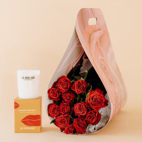 1 Dozen Red Rose Large Carrier + Maison Balzac Candle Sale